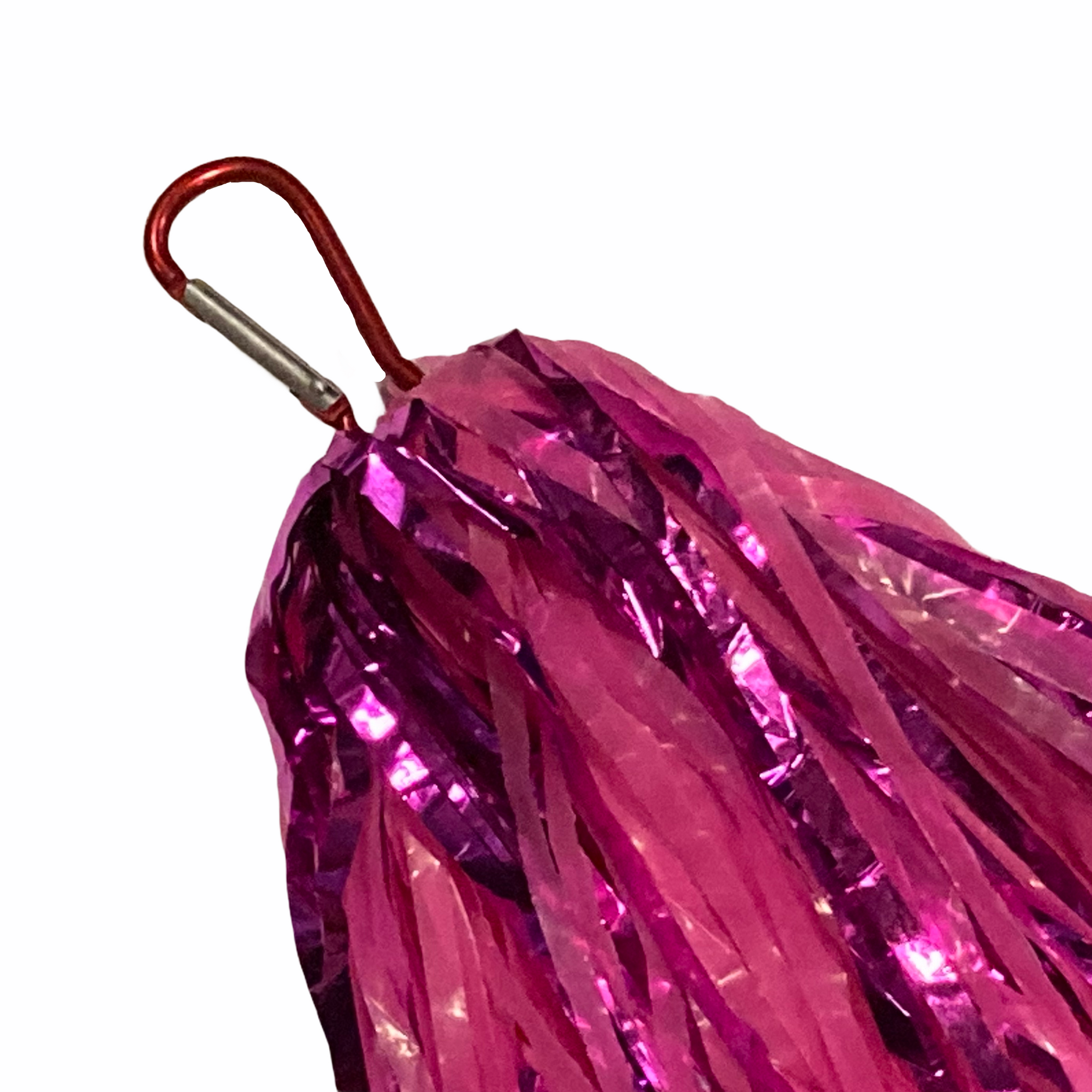 Show some spirit, and let it all hang out with this pom-pom fringe keychain. Detailed with metallic mylar accents and a matching metal carabiner. Sport this as a finishing touch to any outfit, or accessory.